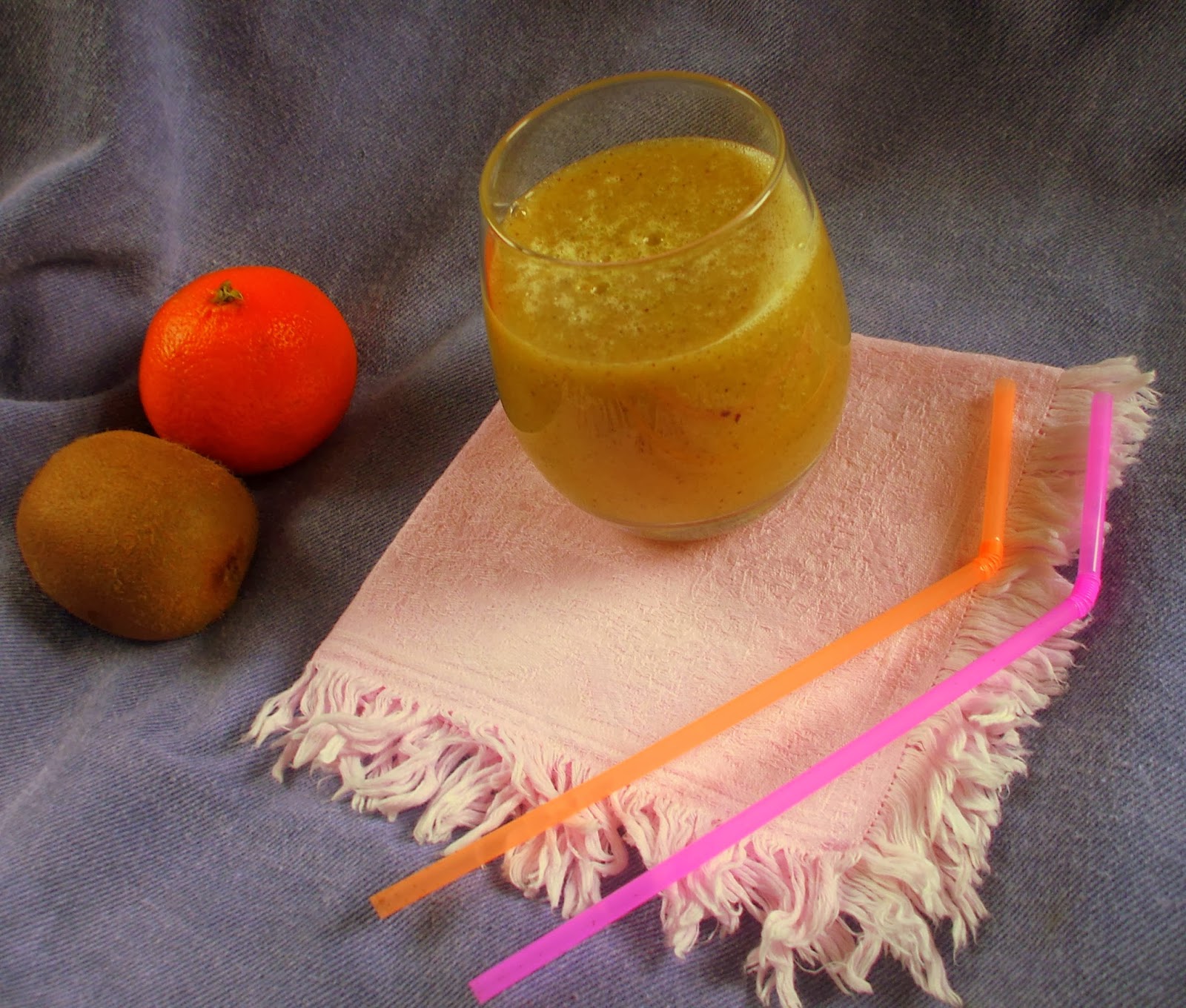 Retirar a casca dos kiwis e a tangerina e descaroçar a tangerina.