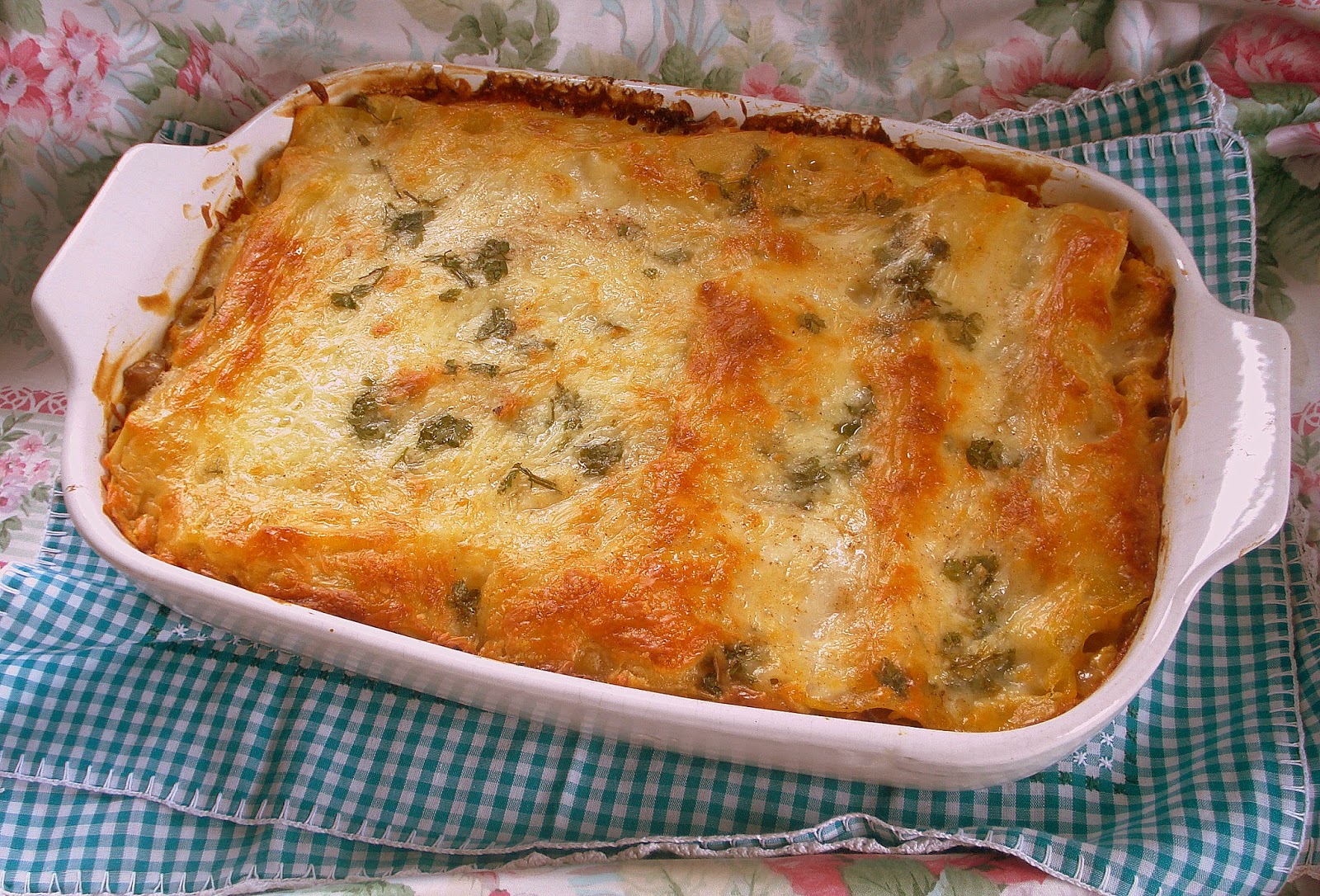 Leve mais 15 minutos para a lasanha ganhar um cor dourada do queijo.