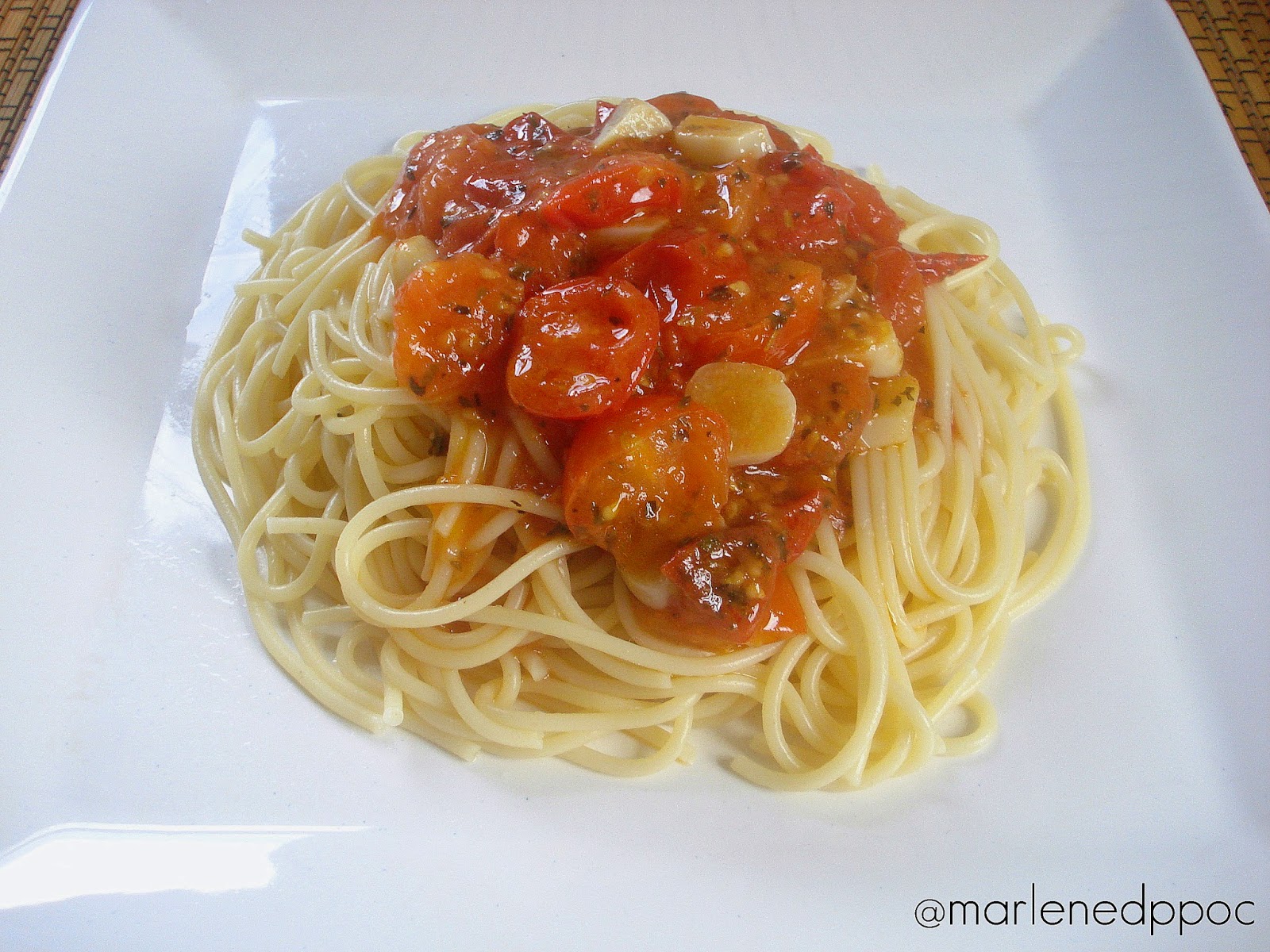 Esparguete com molho rápido de tomate cereja